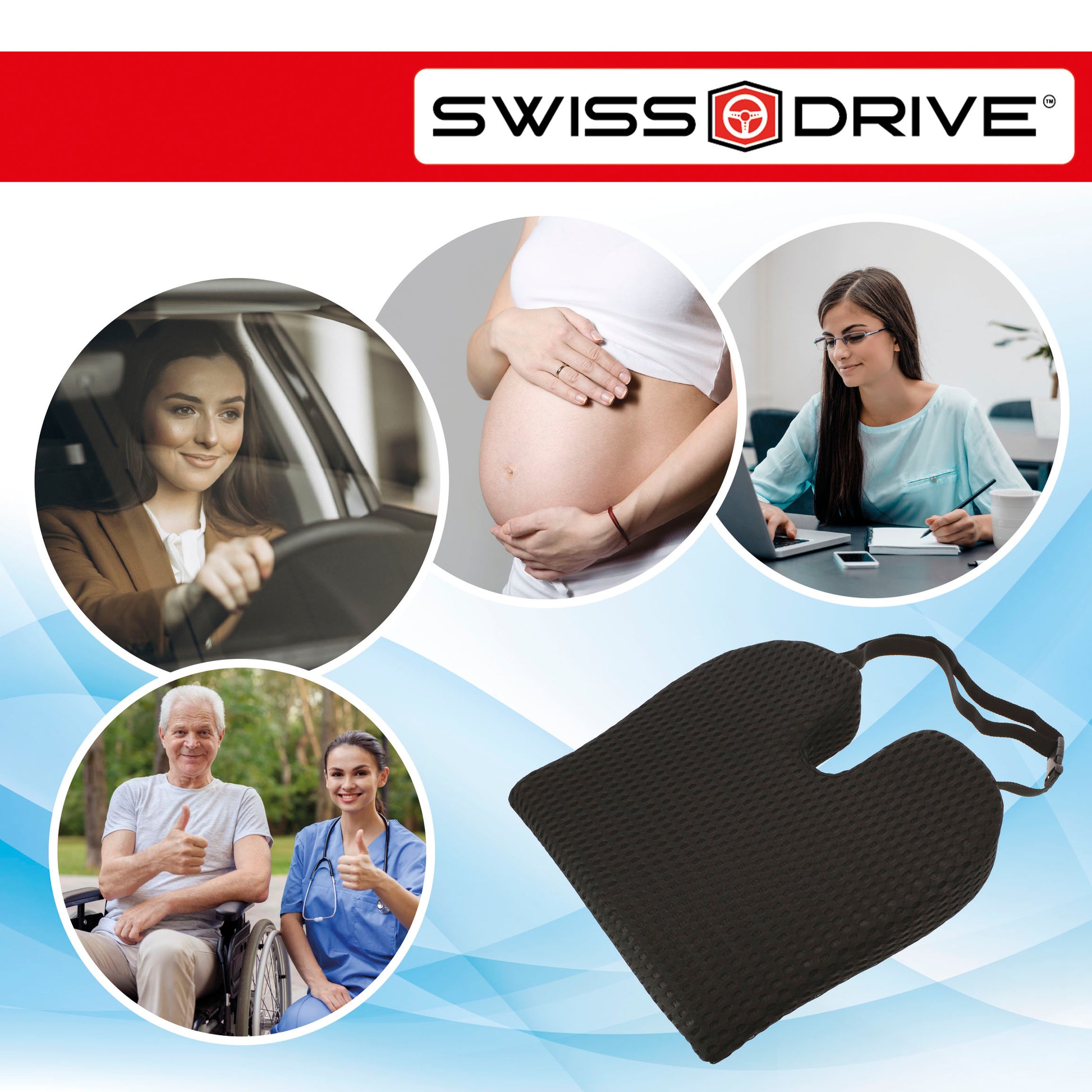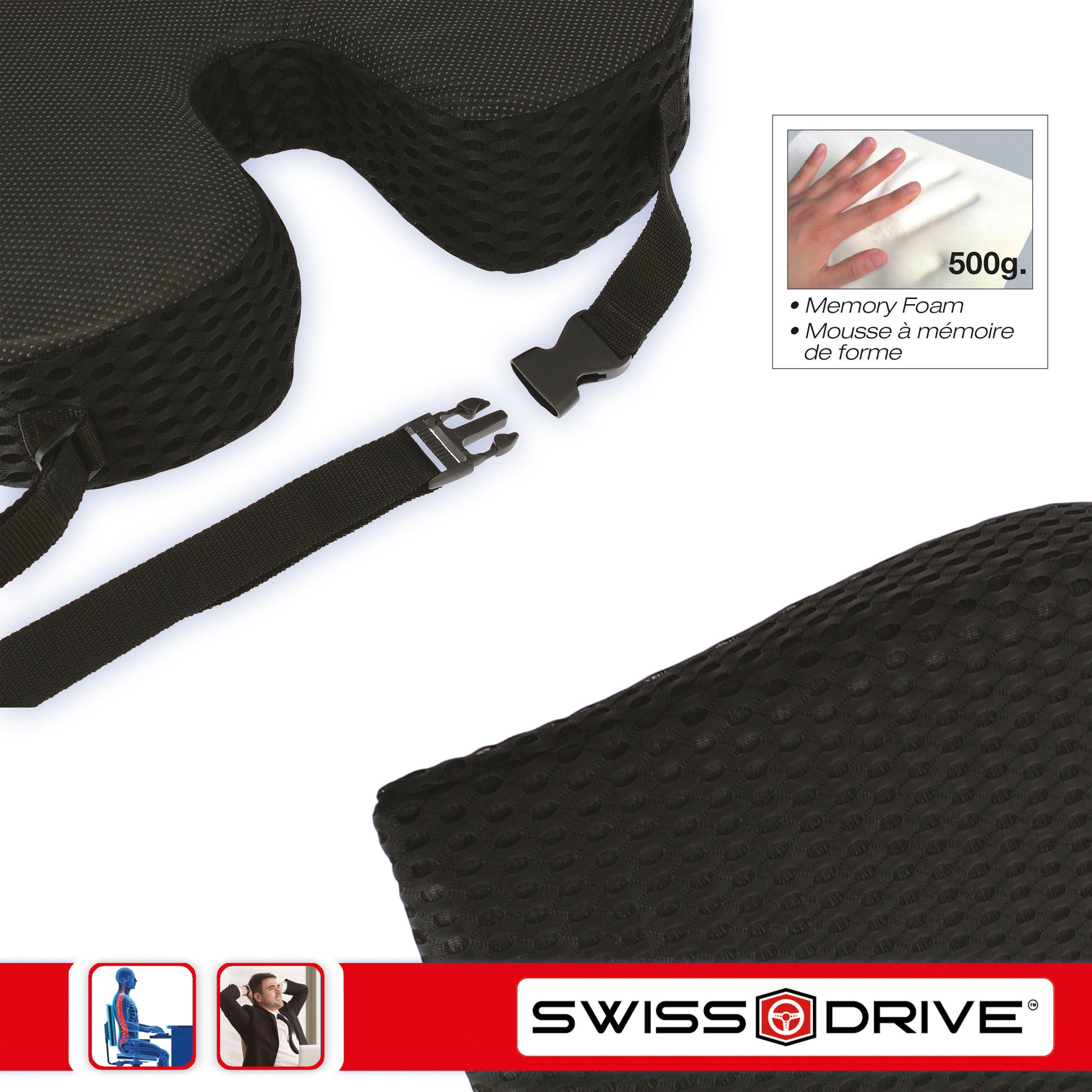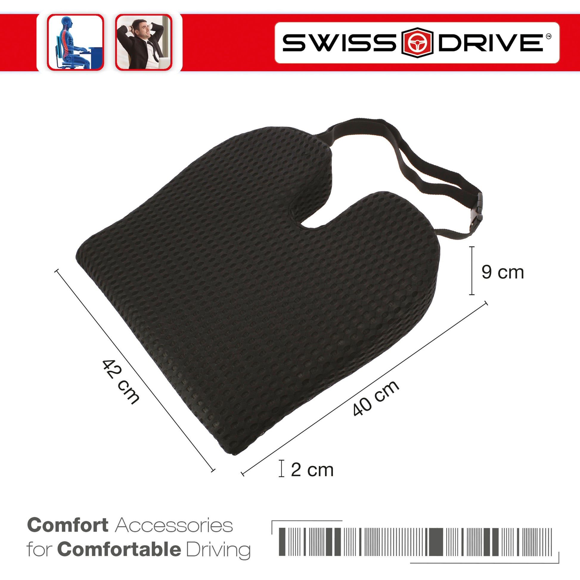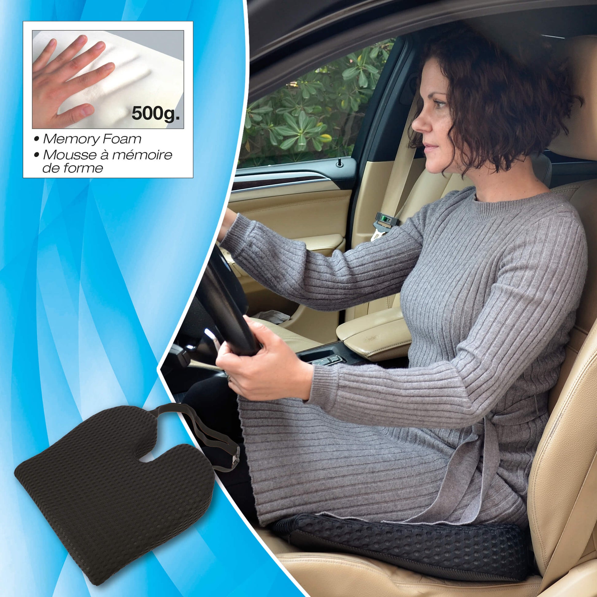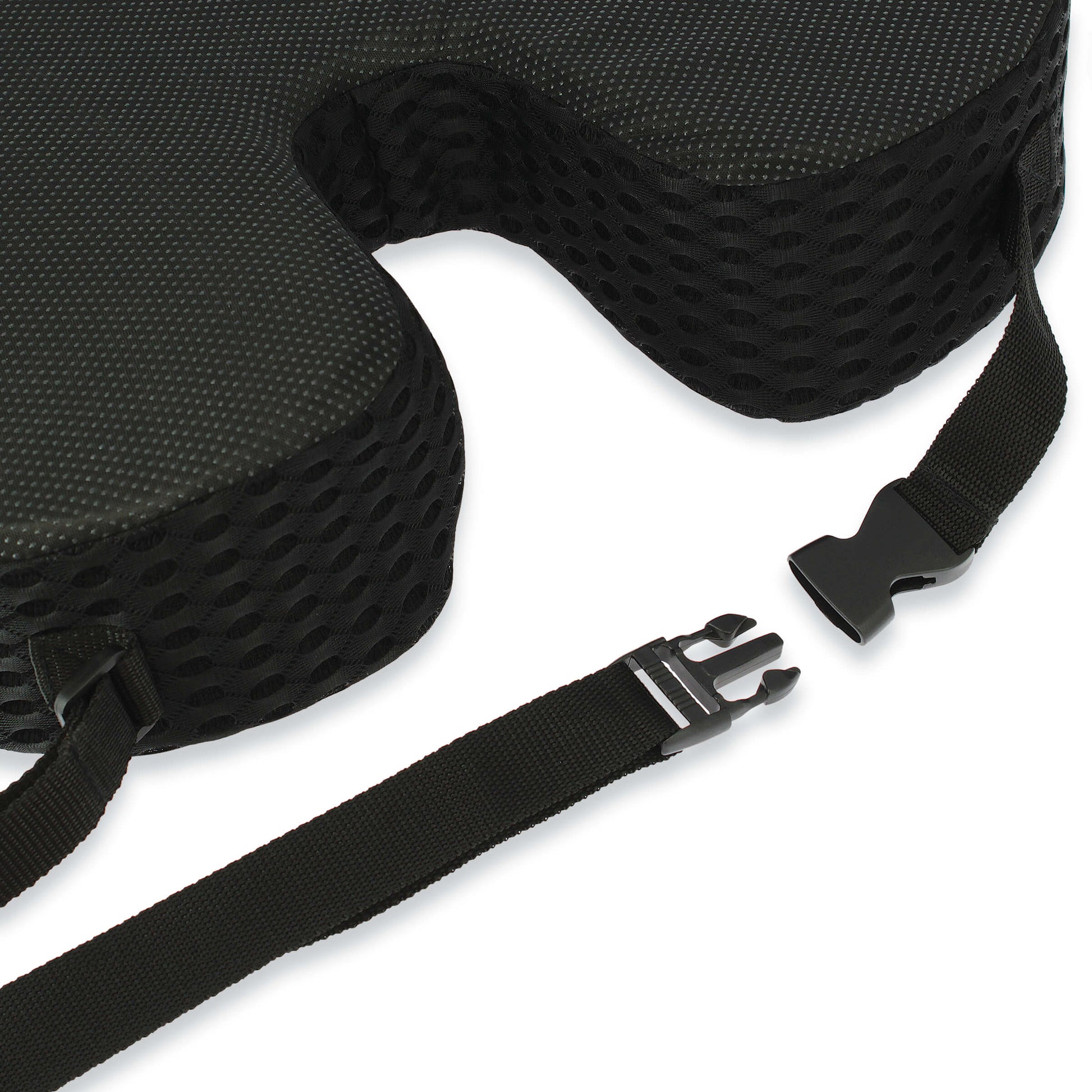 A almofada de assento tipo Donut da linha COMFORT by CAR+ reduz a pressão na pélvis, cóccix, região lombar e períneo. Alivia dores de hemorroidas, úlceras de pressão, prostatite, gravidez, parto e dores lombares. Feito de espuma viscoelástica altamente confortável. Não achata com uso prolongado. Não esvaziará como almofadas infláveis. O suporte antiderrapante garante que a almofada permaneça no lugar e não se mova ou deslize em nenhuma superfície. Promove uma boa postura e uma distribuição saudável do peso durante horas sentadas confortavelmente. Ideal para usar em qualquer cadeira, assento de carro, avião e cadeira de rodas." A capa têxtil removível pode ser lavada.