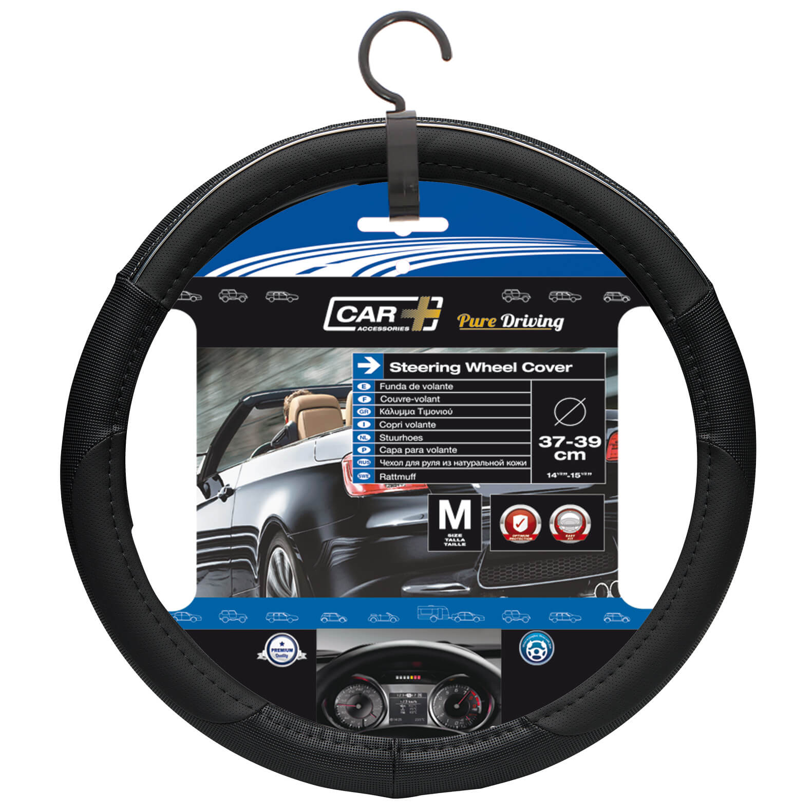 Capa de Volante AUTO "CAR+" Color- Line Preto/ Cinza Tamanho M 37-39 cm
