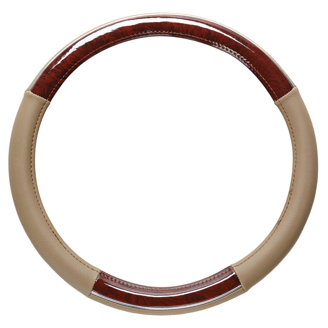 Capa de Volante AUTO " CAR +" Cor BEJE / Madeira Tamanho L 39-41 cm