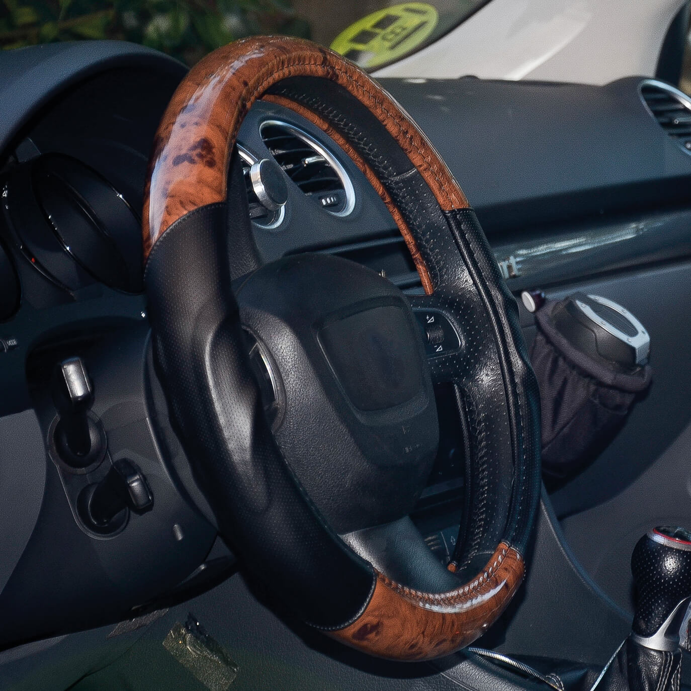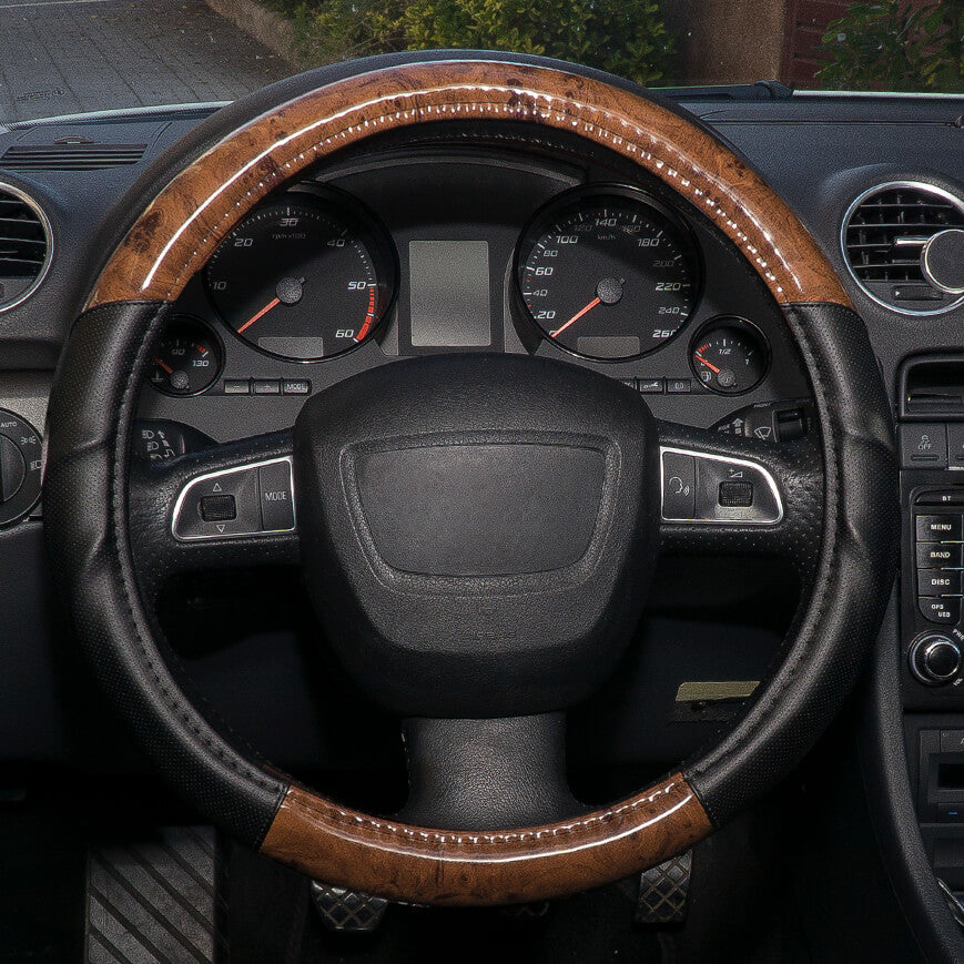 Capas de Volante AUTO "CAR +" LOOK Preto + Madeira escura Tamanho M 37-39 cm