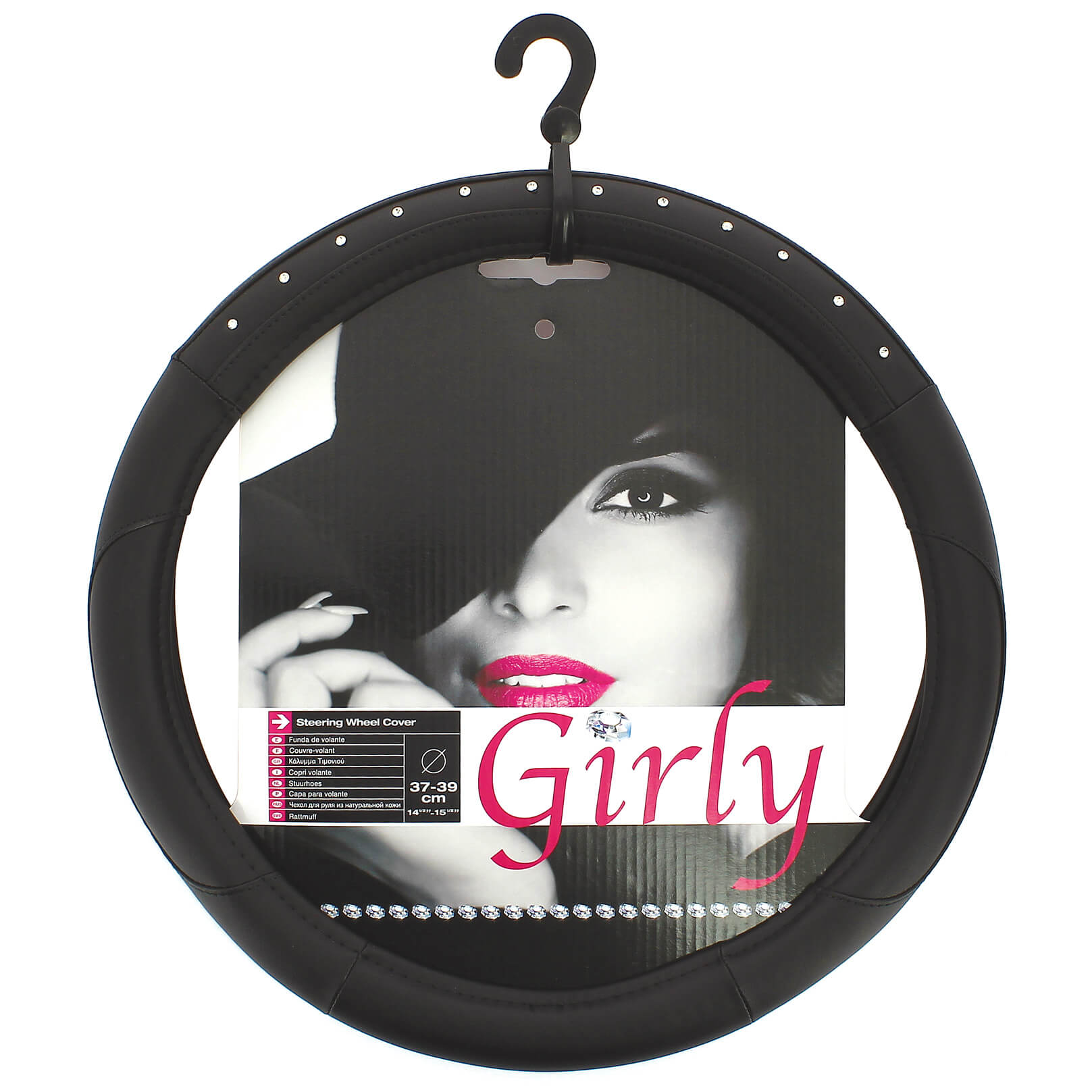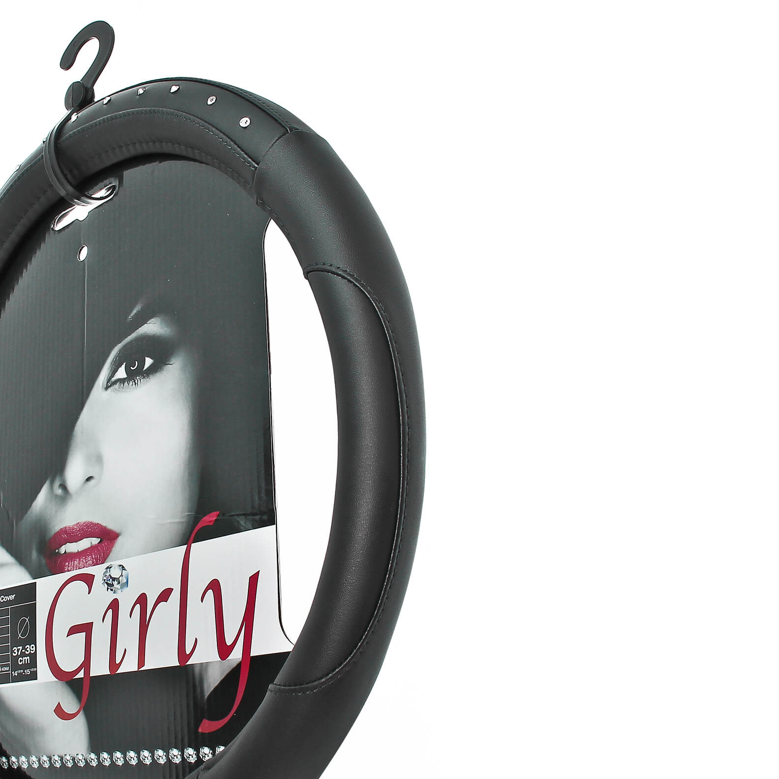 Capa de Volante AUTO " CAR+" Negra com Brilhantes Tamanho M 37-39 cm
