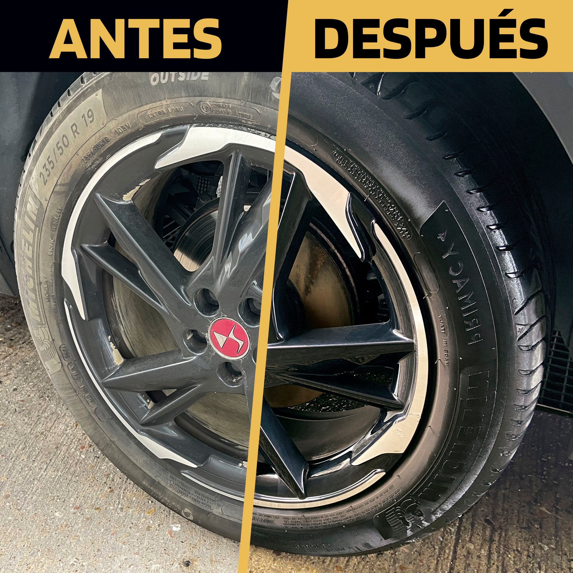 Recuperador e Abrilhantador de pneus. Dá aos pneus um acabamento perfeito, com um brilho espetacular, recuperando o aspeto de pneus novos. Protege, mantém e nutre a elasticidade da borracha. Não contém solventes.